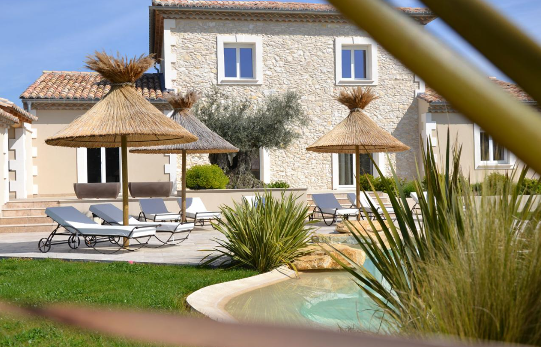 Un mas de 210 m² tout confort : Vous y trouverez un espace de vie spacieux avec sa cuisine équipée, 4 chambres avec salles de bain privatives ainsi qu’une chambre pour enfant équipée d’un lit en 90 et d’un lit bébé, un beau jardin arboré sur les 2500 m² de terrain ainsi qu’une piscine à débordement équipée de son jacuzzi. Idéal pour 8 à 9 personnes.