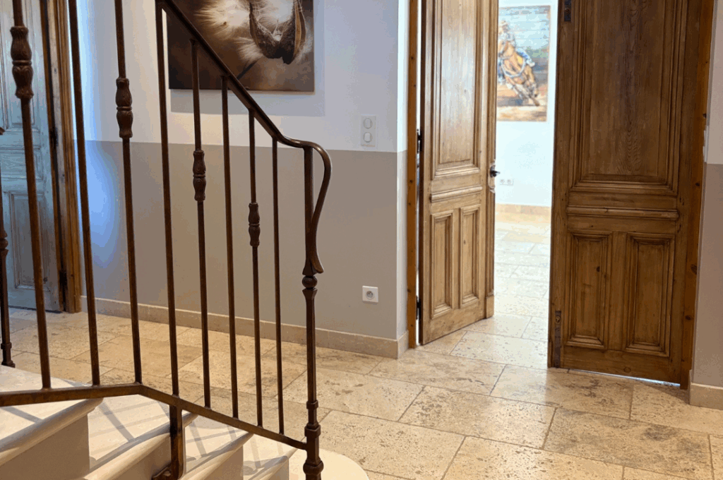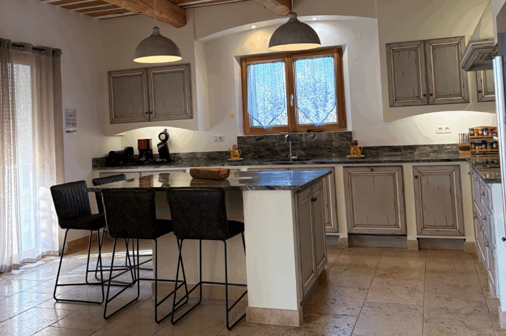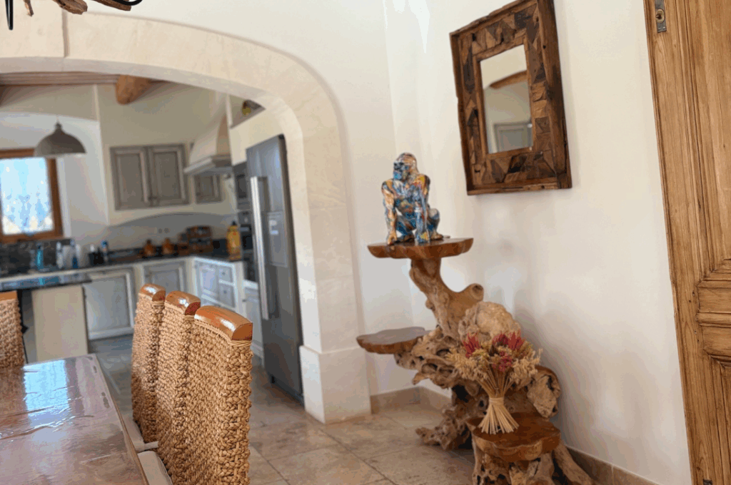 La maison offre de grands espaces baignés de lumière, où chaque détail a été pensé pour votre confort. Le séjour spacieux, avec ses poutres apparentes et ses canapés en cuir, invite à la détente en famille ou entre amis. La grande table à manger et la cuisine ouverte entièrement équipée permettent de partager de bons repas dans une ambiance conviviale.